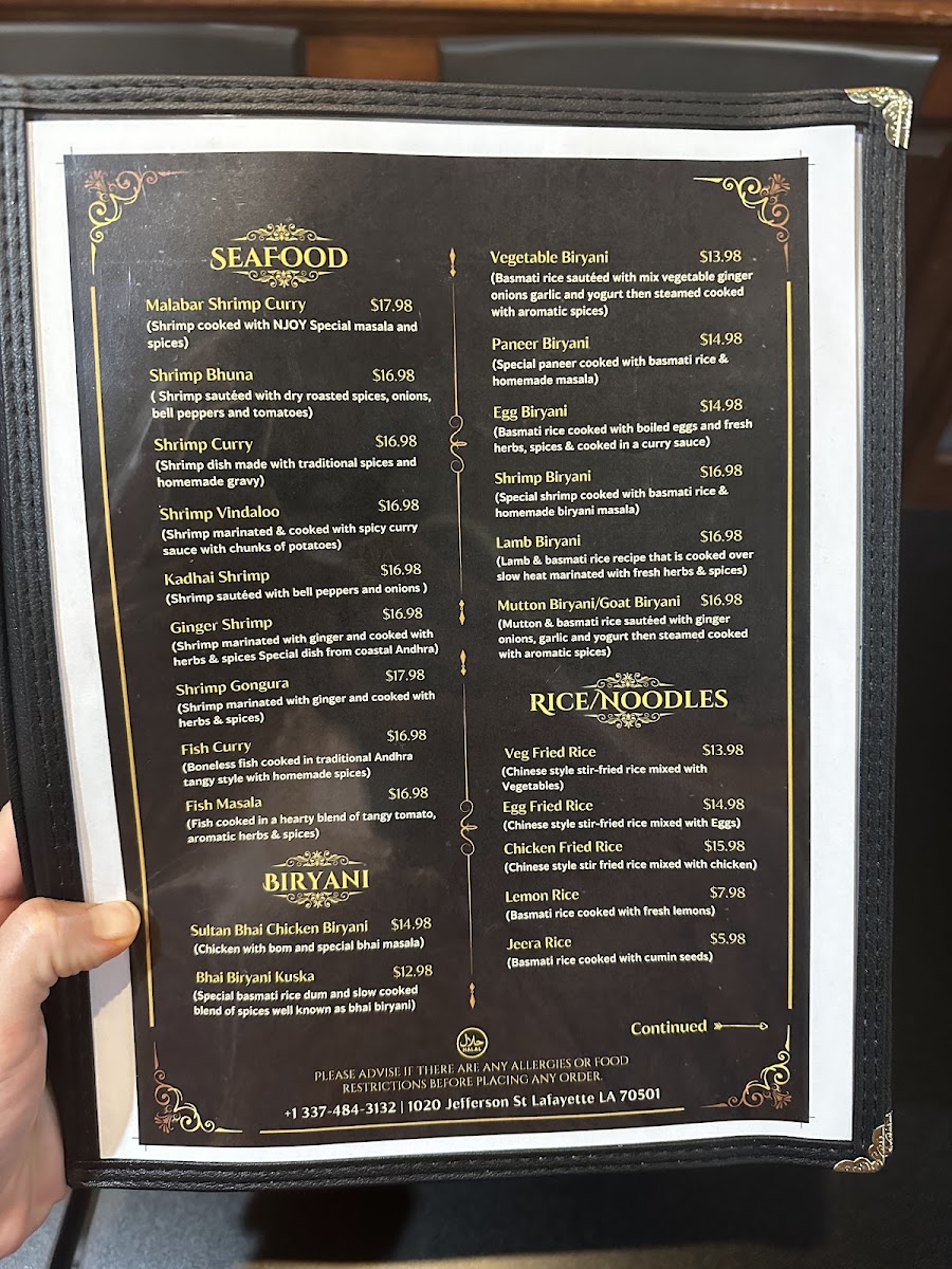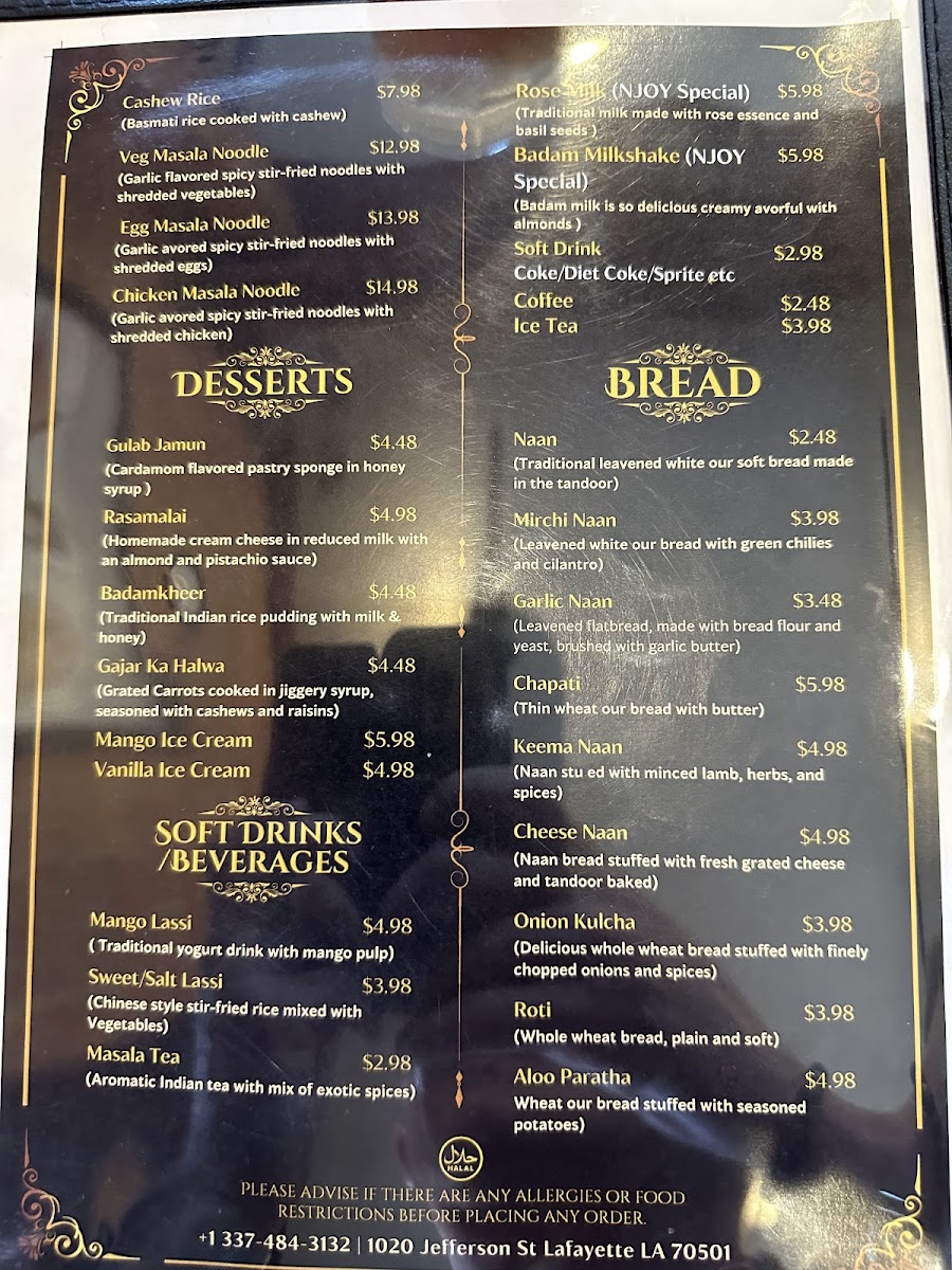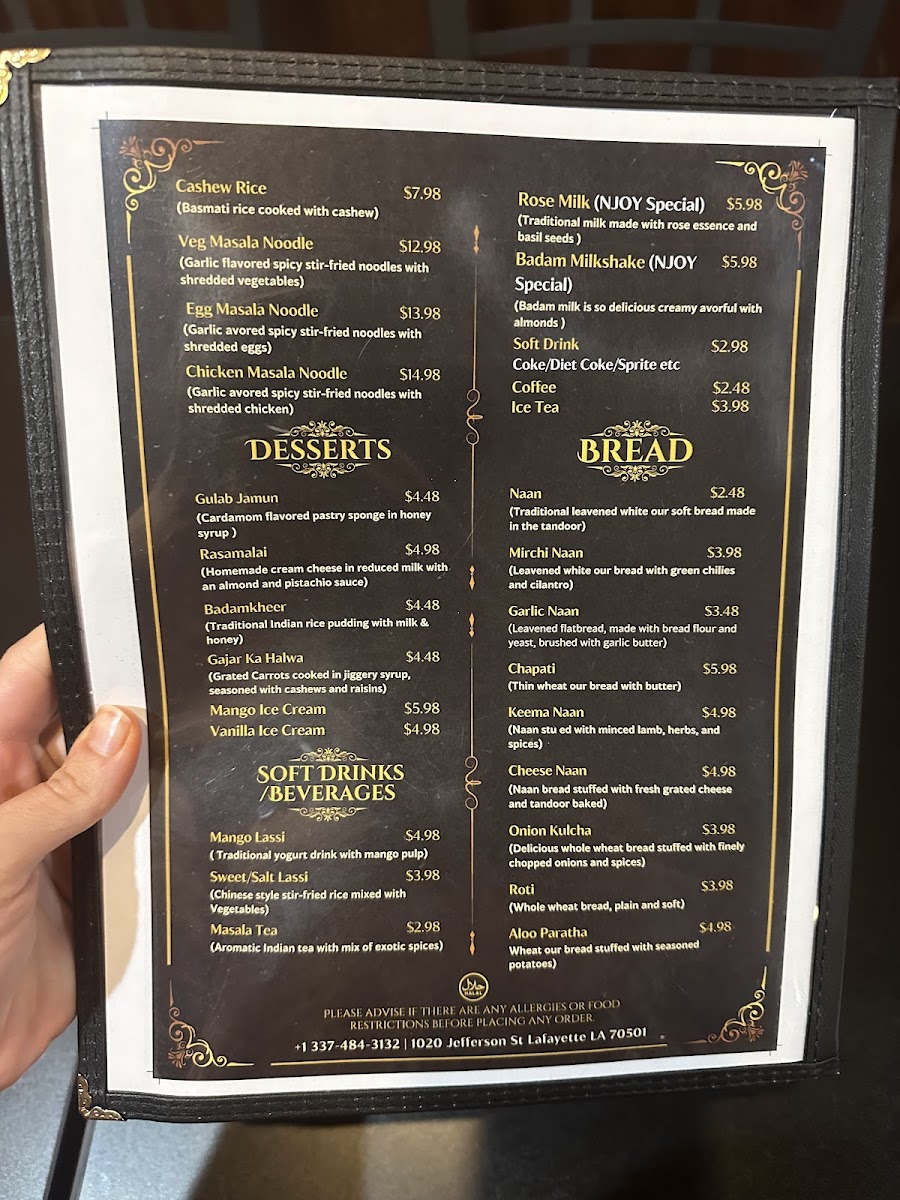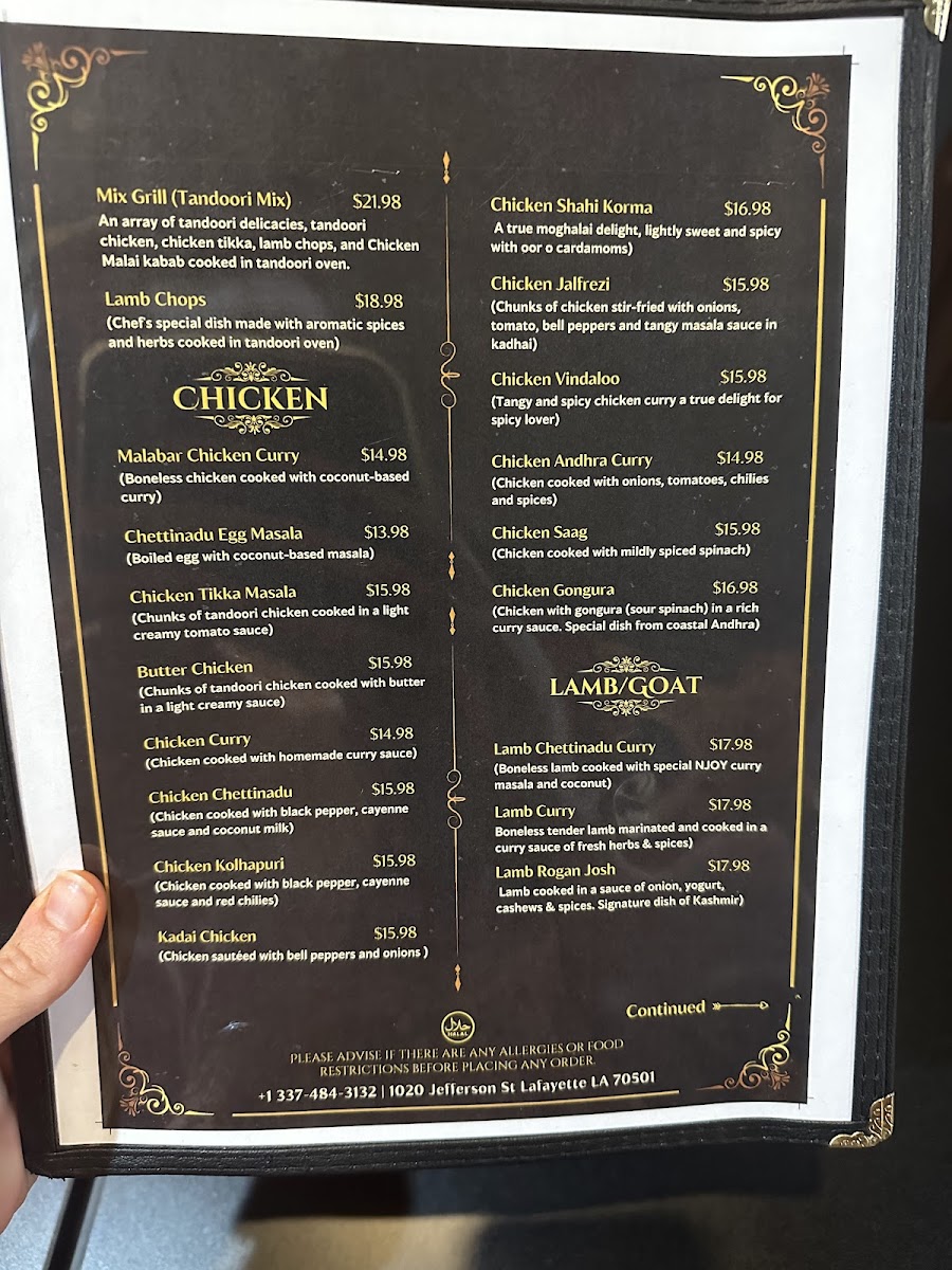 The menu at NJOY Curry Masala offers a well-rounded selection of Indian dishes that balance rich, traditional flavors with a welcoming, casual dining experience. The offerings range from comforting soups and tangy chutneys to hearty mains like tender Lamb Rogan Josh and aromatic Mutton Biryani. Whether you're stopping by for a flavorful lunch or a relaxed dinner, the menu fits seamlessly with the warm, inviting atmosphere of the restaurant.